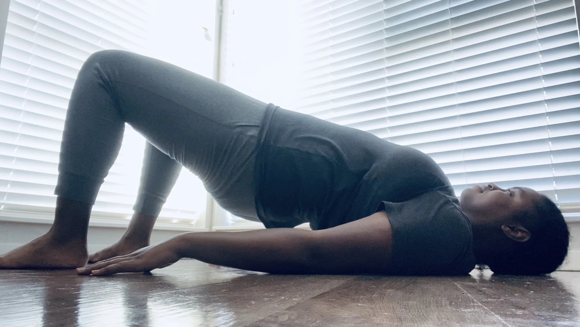 In order to improve your posture and support your spine, we’re going to take it to the floor for Setu Bandha Sarvangasana (Bridge Pose) and Supta Matsyendrasana (Supine Twist).